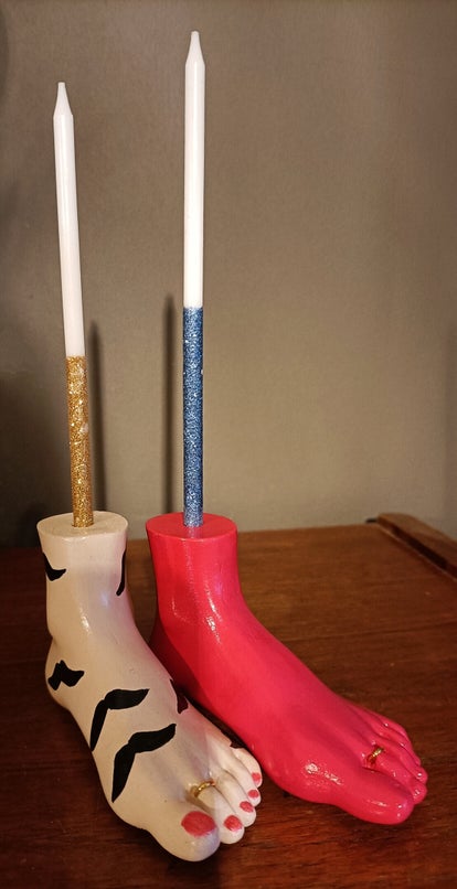 Handgemaakte drie-in-één "F*ck you" kandelaar.