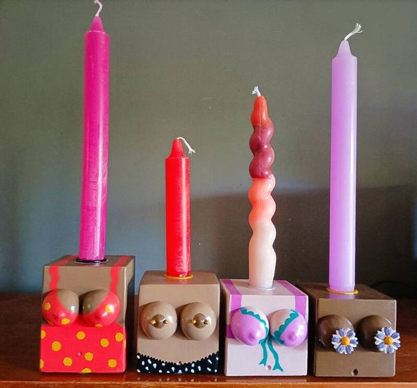 Krijg nou tieten! Kandelaars met een vette knipoog. Deze zijn onderdeel van de Boob collection van vlammigg, als ode aan de mooie vrouwelijke vormen.