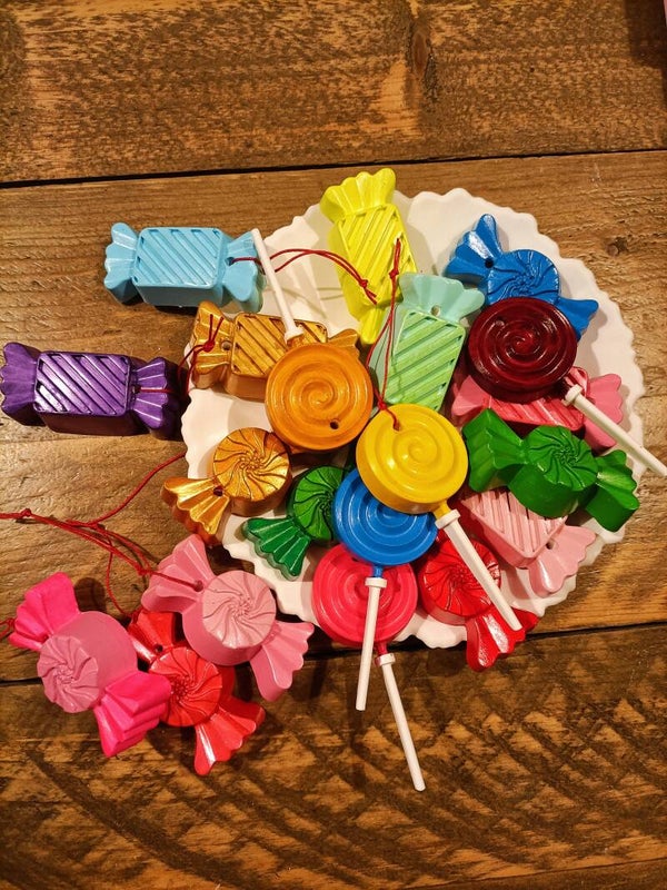 Kerstboomsnoepjes, kleurrijke en handgemaakt, een eyecatcher in je boom deze kerst!