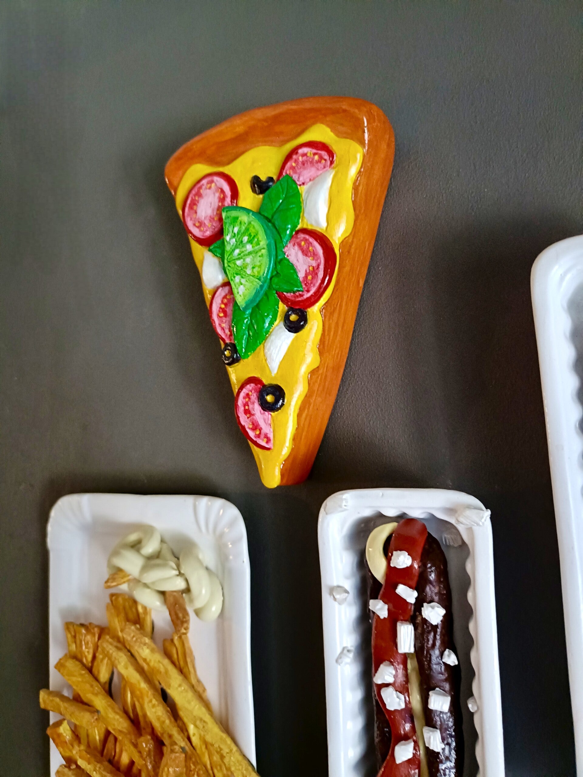 Handgemaakte wanddecoratie pizzapunt. Deze pizza punt is een top cadeau voor de je vriend(in)die verzot is op pizza. 🍕