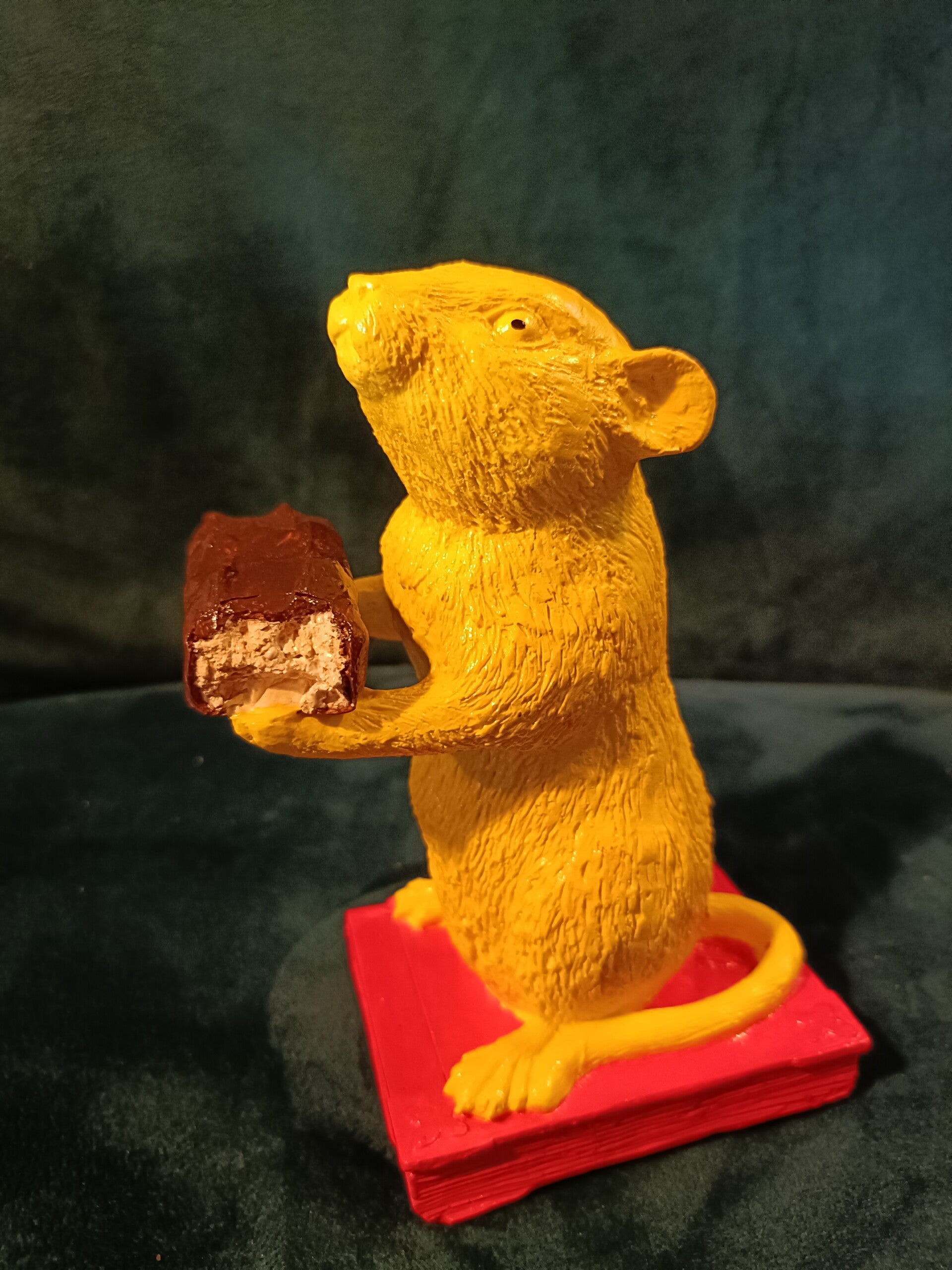 Deze rat bied je een stukje chocolade aan....maar let op...hij heeft er al een stuk van op!! Sorry...