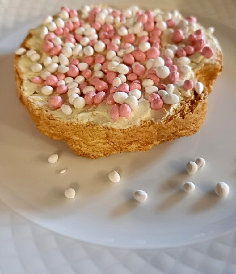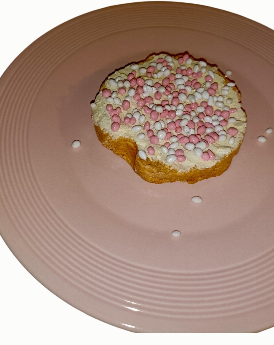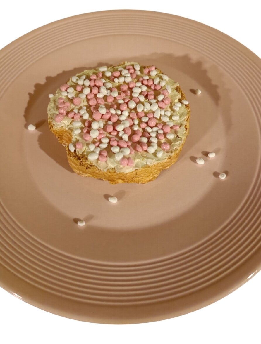 Beschuitje met roze/witte muisjes, de echte nederlandse traditionele traktatie bij een geboorte van een kindje.