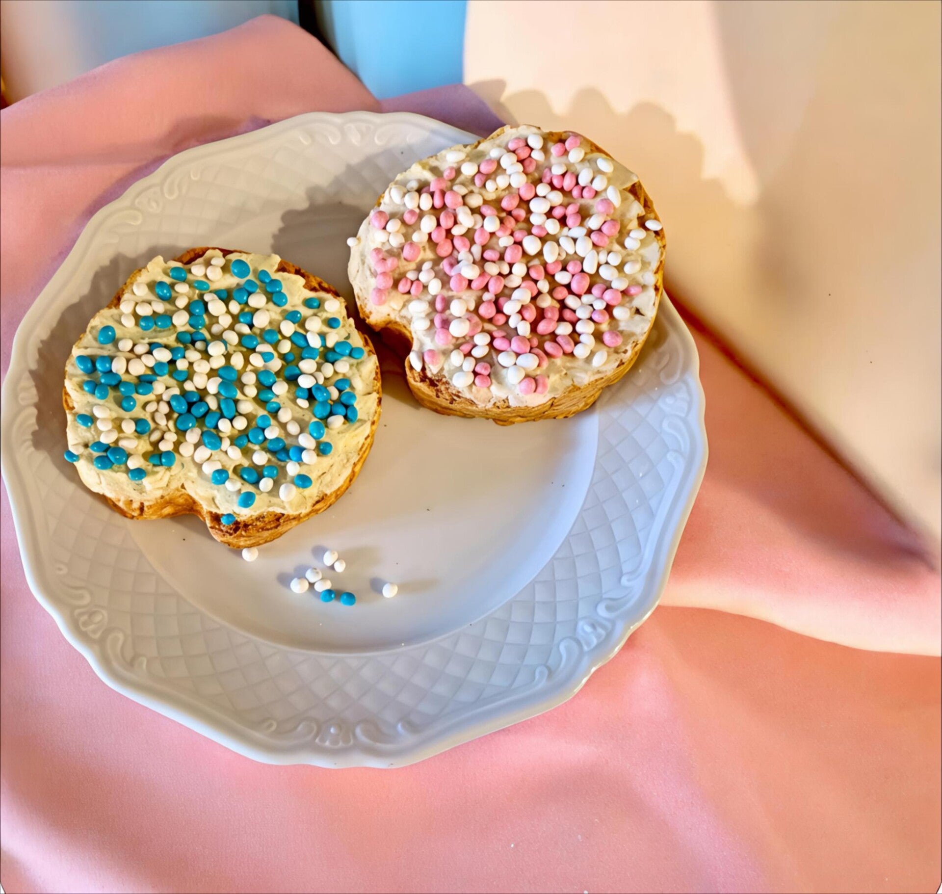 Beschuitje met roze witte muisjes