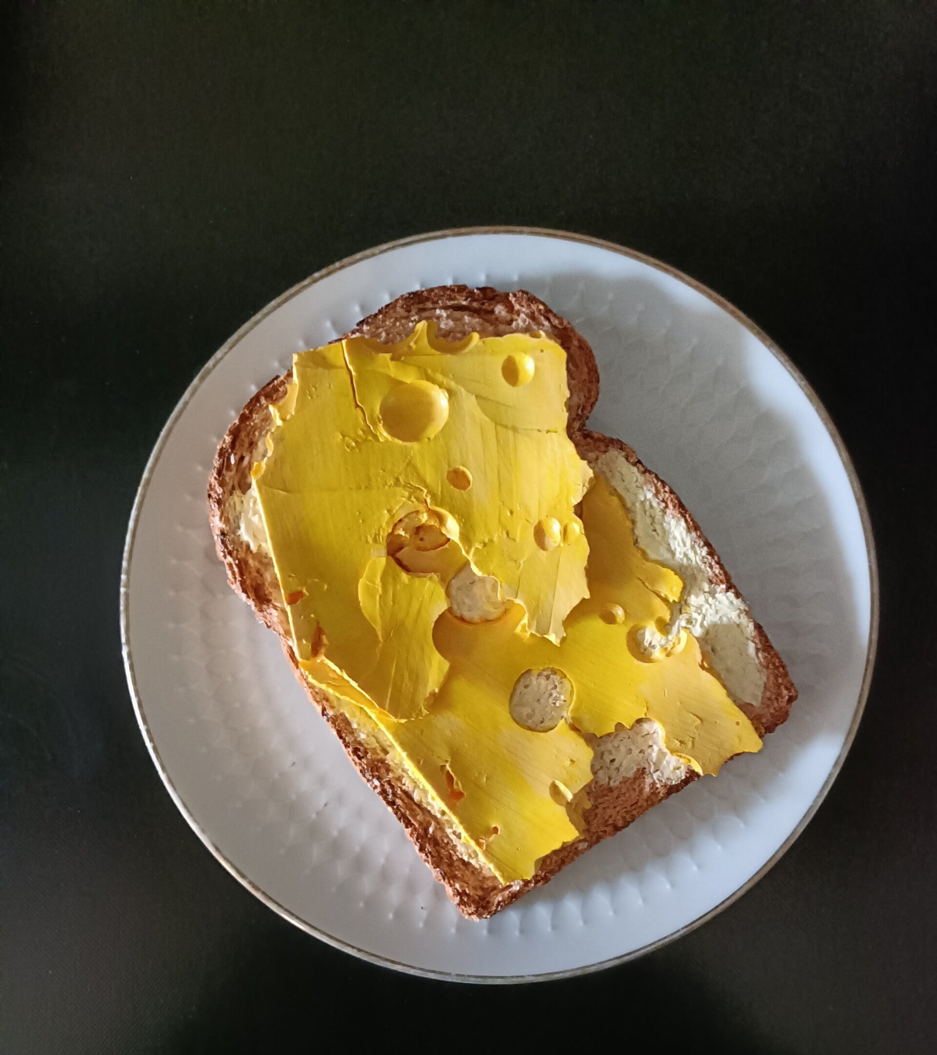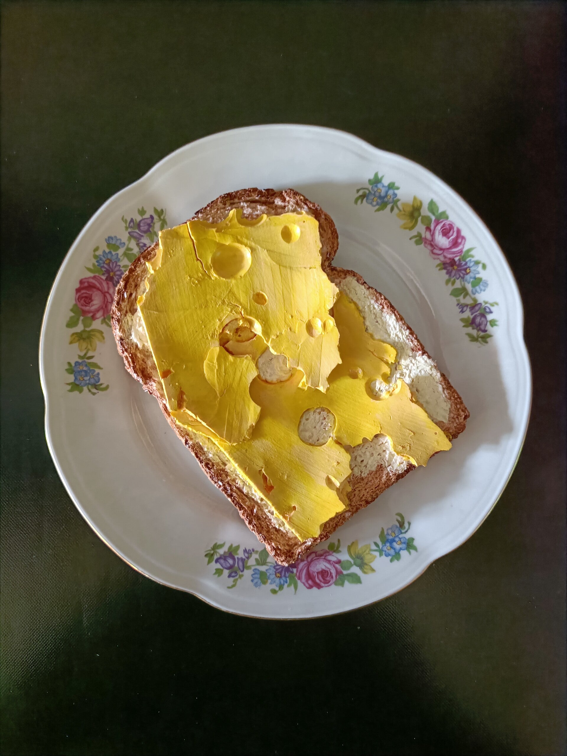 Bruine boterham met kaas. Kaas is een typisch Hollands product, van jonge naar oude kaas, niet meer weg te denken als beleg voor op de boterham.